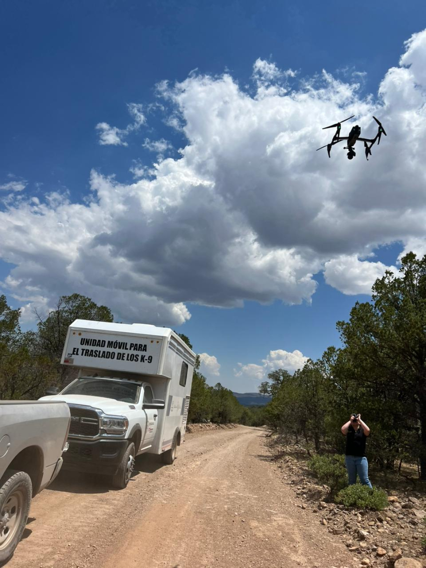 En esta actividad el Grupo Especializado de Búsqueda utilizó drones para llevar a cabo una inspección aérea y documentar los accesos y condiciones del terreno de las áreas en donde pudieran existir indicios con interés criminalístico.
